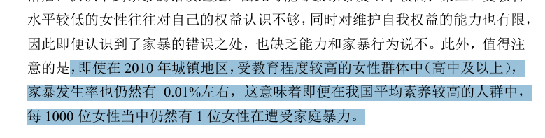 从相关描述看,受到家暴问询的女性事实上在他的有效样本里占比可能也就10%左右,而杨女士非常不负责任地将49万样本全部进行了展示,换言之她根本没有做数据预处理,只是随手把描述性统计放出来了。