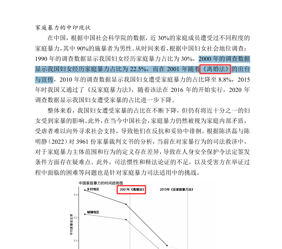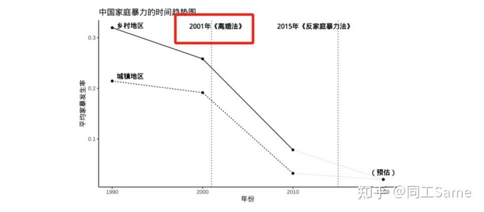 首先,我说下事件分析法或者DID成立的基本前提假设。这种拟自然实验的一个根本逻辑,是要验证“时间点0的处理行为产生了实际的经济或社会效果”,也就是说,事件分析法需要得出两个结论:(1)我的处理行为导致了结果;(2)这个效果必须是由我的处理行为导致的,而不能是由于事前就存在的实验组与对照组的显著差异。前者即“处理效应”,而后者则是“平行趋势假设”。(1)和(2)的存在构成了DID模型能够处理内生性问题的基础(当然家暴行为本身的内生性也没被考虑进来,麻了。)