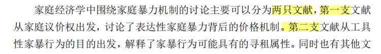 方法论方面:本文如果是交叉学科研究,显然缺乏对应的文献综述,以及对应的典型案例分析。本文如果立足于单一学科研究,则题目本身涉及变量之繁杂,导致其根本无法成立,硕士学位论文的篇幅绝无可能完成推演。本文因此出现很多无法解释的论证断裂,以及数据分析的刻意曲解。如第三章家庭暴力的经济学模型,与前两章的比较分析缺乏衔接,亦没有足够多的差异性样本支撑论证,这造成之后的变量分析尤其是国别比较没有足够的说服力。