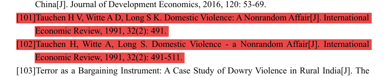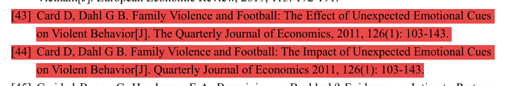 格式方面:本文英文摘要部分格式错误,段首无缩进,英文关键词甚至出现中文(双重固定效应作为论文重点概念,没有对应关键词,不符合基本的学术写作规范)。全文错别字较多,语法表述错误较多,相关引证极不规范。量化研究框架缺乏足够明确的论证过程,多数外文引文检索无效,随机遴选核对后,引证内容与文章论证亦无明确关联,高度疑似剽窃某同源主题论文的参考文献。此外在国内已有前期成果的基础上,中文著作与中文期刊缺乏主题相关性。