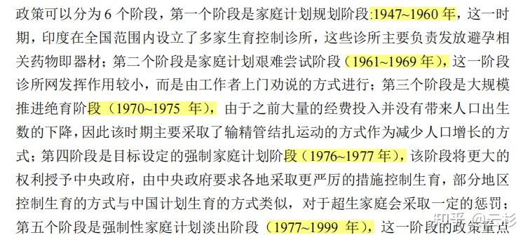 描述印度人口政策这部分,第一阶段不用括号形式,后面改用括号,第四季阶段与第五阶段1977年重合,我无法理解这篇论文要是手敲的怎么会出现这种问题,更何况这还是武汉大学的一名研究生所写的文章。
